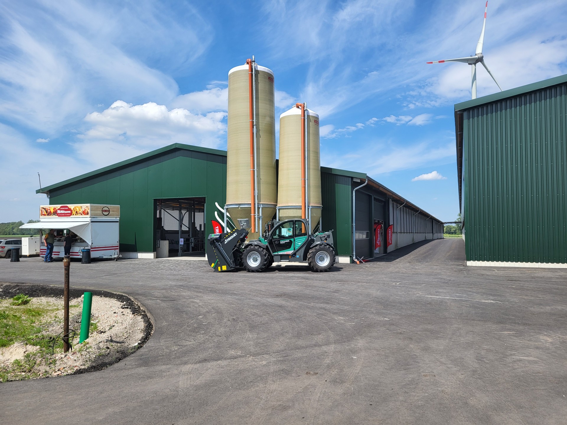 Am 16.05.2024 waren wir von der EZG zu Gast beim Tag der offenen Tür unseres langjährigen Kunden Hermann Korten aus Börger. Zu sehen war dort ein neuer Bullenmast-Tretmiststall der ca. 430 Endmasttieren ausreichend Platz bietet. Ausgestattet ist dieser mit modernster, automatisierter Einstreu- und Fütterungstechnik. Nebenan bietet eine überdachte Siloplatte sowie eine Strohlagerhalle genügend Platz für die gesamte Grundfutterlagerung.